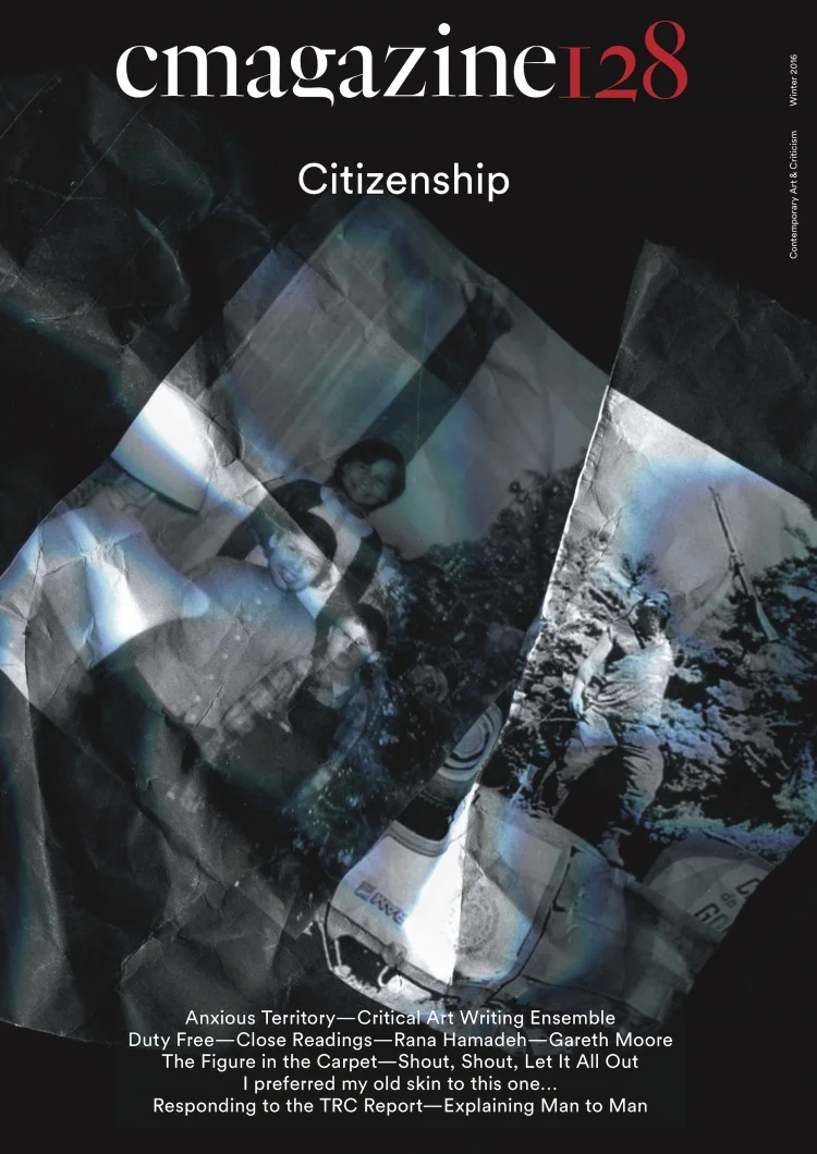 AM: One of the questions that arose as the issue came together was how do we talk about these problems when C’s staff is made up entirely of people whose citizenship is almost never questioned. We saw the risk of reproducing this false neutrality, where citizenship was presented as always concerning an “other” whether on the basis of race, nationality or sexuality. It became increasingly apparent that we needed to interrogate many of the different ways citizenship is produced, both consciously and unconsciously. In this issue Yaniya Lee looks at this idea of neutrality within art criticism, and at instances where it serves to re-inscribe forms of exclusion and reaffirm dominant forms of citizenship. One of the ways we are implicated as editors and writers is through how we frame and represent other peoples’ words and ideas, so we are faced with the question of how not to project our own assumptions and experiences on others, and instead learn to listen and converse.